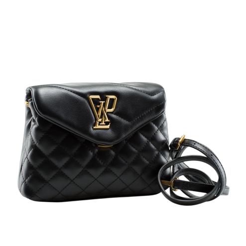 The Gaelle bag shoulder strap small double matelassé is the accessory that combines timeless elegance and practicality. Made of black eco-leather, this woman's bag features a clasp with old gold metal hook, which gives it a sophisticated touch.