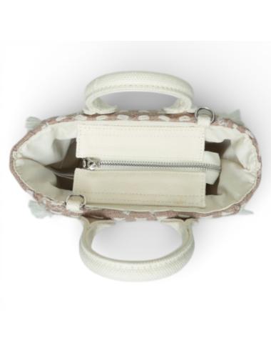 Made of cotton and with a contrasting embroidered Gaelle Pari logo on the front, it combines material texture and evident branding. Double top handles for hand portability and removable shoulder strap.