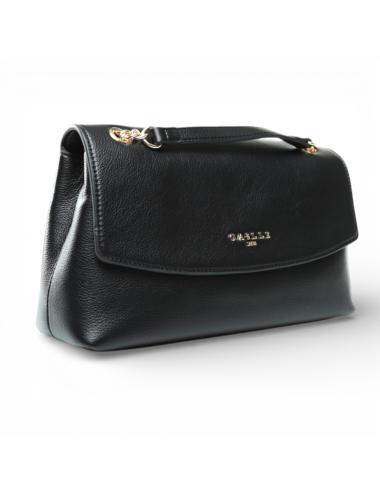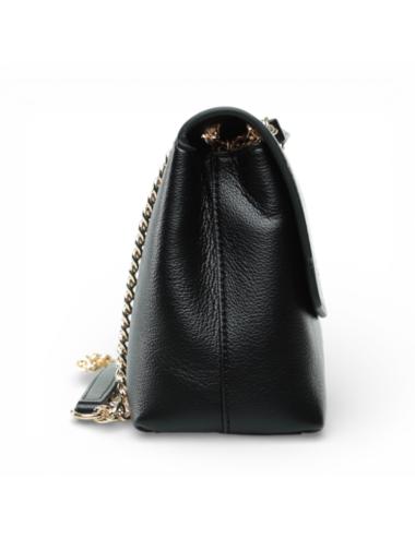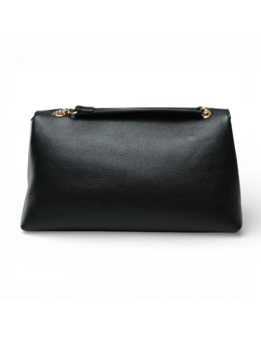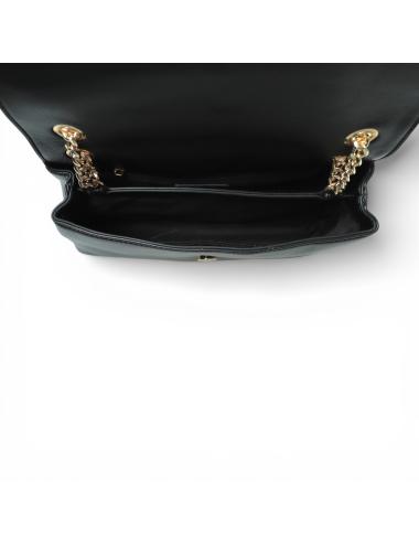 The Gaëlle Shoulder Bag Chain is the ideal bag for those who want to combine elegance and practicality. Made of fine black faux leather, it has a structured and refined design, embellished with the metal front logo and the shoulder strap with golden chain that adds a touch of light and femininity.