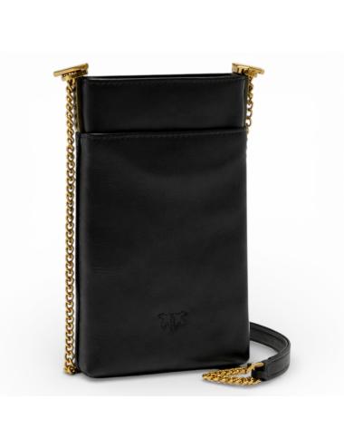 PINKO Leather Shoulder Smartphone Case – Black