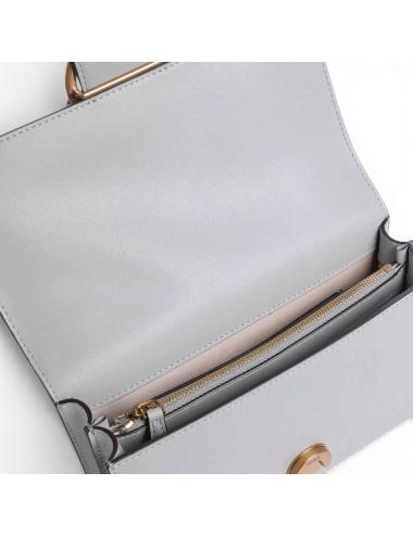 Medium handbag in pearl grey leather with Love Birds logo and gold chain