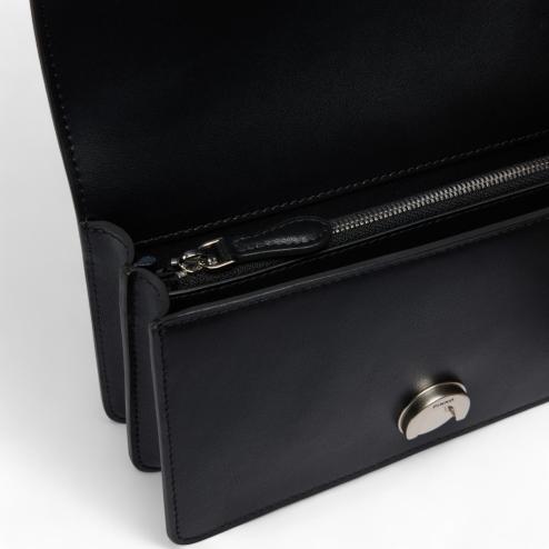Small black leather shoulder bag with Love Birds logo and adjustable shoulder strap