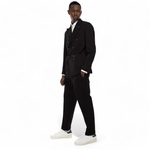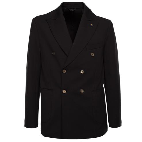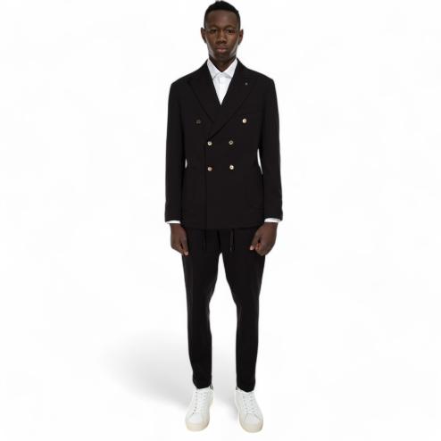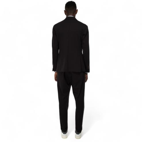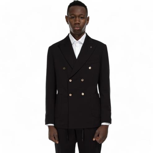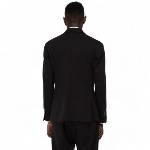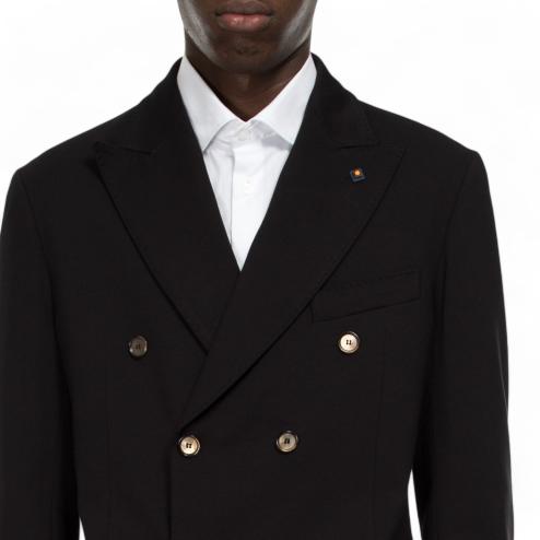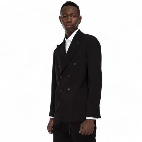 Black Milan stitch fabric jacket, double-breasted side pockets model, removable interior, sleeves with 3 buttons, pin on the rever. Matchable jacket with fabric pants : SKU 10586 "Outfit black pants"