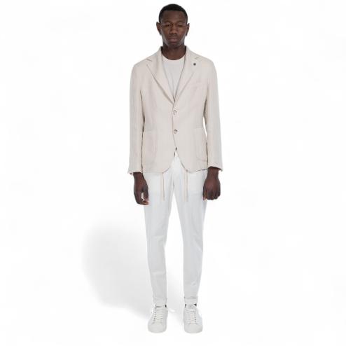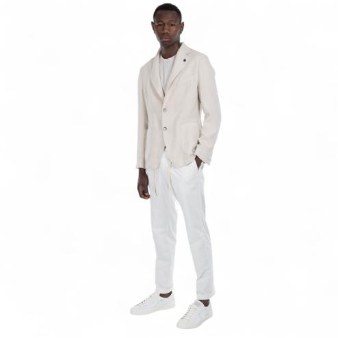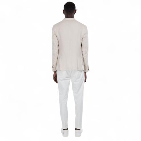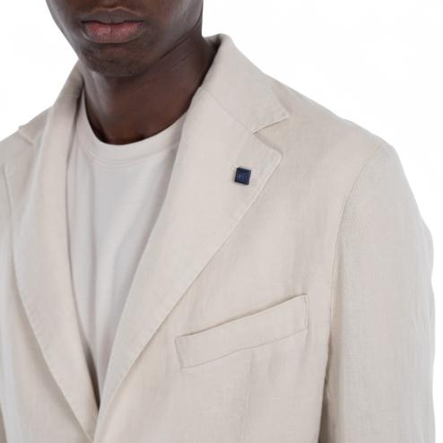 Made with high quality materials and finished with craftsmanship in Italy, this beige linen jacket from the new collection combines comfort and elegance. Ideal for a sporty-chic look combined with jeans and t-shirts.
