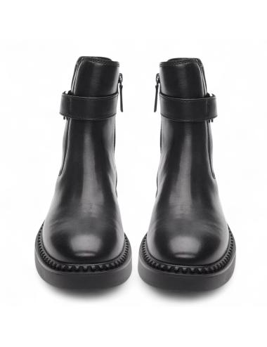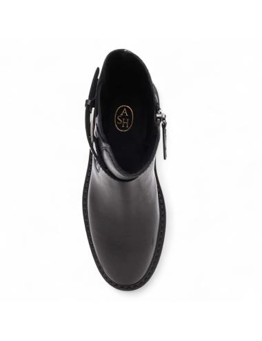 The Ash Margot Mustang Black ankle boots are the perfect blend of boldness and sophistication. Crafted from black leather and fabric, they stand out for their ankle strap with a metal buckle and sturdy rubber sole with a 4 cm heel for comfort and stability.
