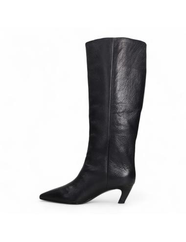 Violet Black boots are a feminine and sophisticated style, perfect for those seeking elegance without sacrificing practicality. Crafted from leather, they feature a minimalist and contemporary design. The slim, slightly arched 5 cm heel slims the silhouette, making them ideal for both dresses and slim trousers.