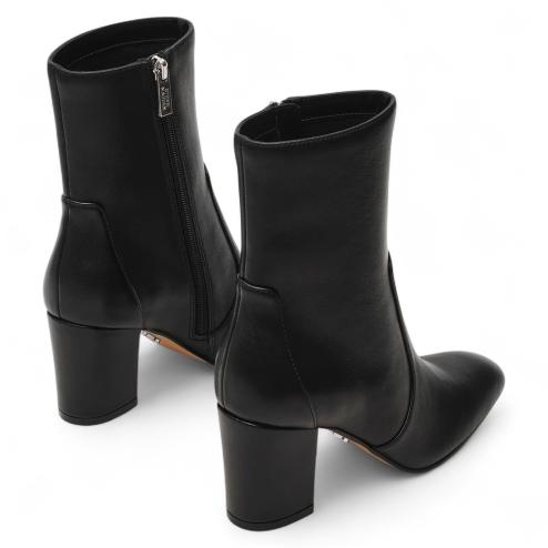 Black brushed leather women's ankle boots, rounded toe, inside zip fastening, rubber sole, 8 cm high squared heel, insole soft latex lining.