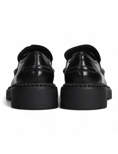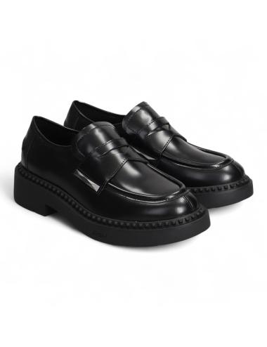 The ASH Medusa Loafer reinterprets the classic moccasin with a contemporary and bold style. Crafted from soft Soft Polish Calf leather , they feature a glossy finish and a structured silhouette. The chunky rubber sole, decorated with tone-on-tone micro studs, adds a bold and modern touch while maintaining the refined elegance typical of the ASH brand.