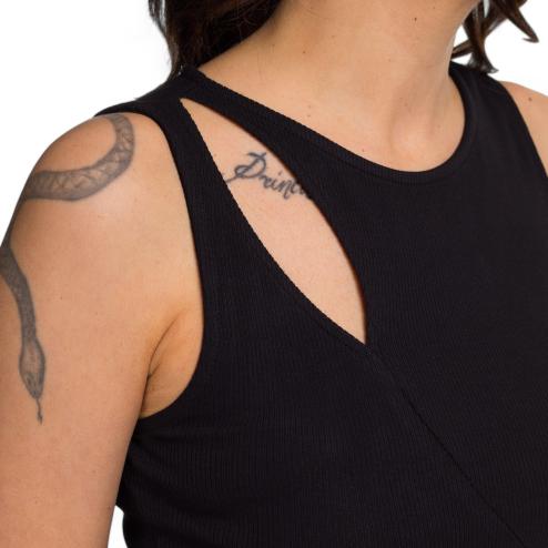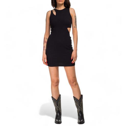 Hinnominate woman short dress with ribbed cotton tube, rhyme model, with cut on the side and shoulder, Hinnominate tone logo on tone.