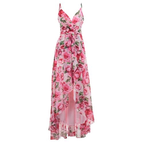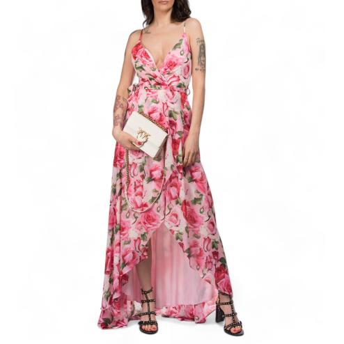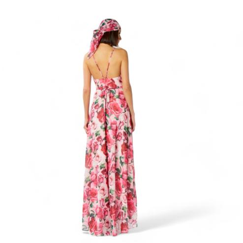 The elegant and long woman's dress, with a delicate floral pattern, enchants with its heart-shaped neckline and the subtle bretelline that accentuate the grace of décolleté. Complete with a refined life jacket, this head of the NO SECRETS line stands out for its sensuality and timeless charm.