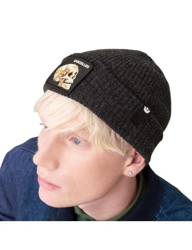 Unisex knitted hat with embroidered skull patch "Cancelled"