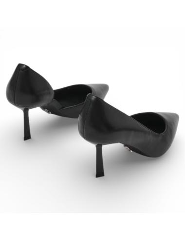The smooth black leather upper guarantees a premium look and a clean visual rendering. The tapered toe elongates the figure, while the slim 7 cm heel balances femininity and portability. Classic décolleté profile, perfect for office, events and evening.