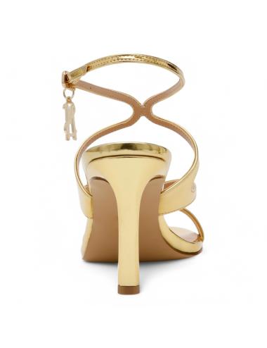 Sandals Steve Madden Gracia Gold are the perfect choice for a sophisticated and glamorous look. Made of golden eco-leather with a refined glossy finish, they open the silhouette thanks to their 9 cm stiletto heel. The adjustable ankle strap ensures a stable and comfortable fit, while the insole padded interior offers maximum comfort.