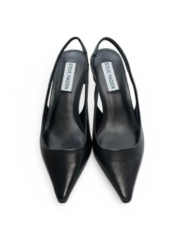 The Steve Madden Kari Slingback in black leather is the epitome of elegance and comfort. With a tapered toe and a comfortable 5 cm heel, these pumps offer refined style without sacrificing practicality. The cushioned footbed ensures a comfortable fit throughout the day, making them ideal for any occasion. A great choice for those looking for a perfect mix of class and comfort.