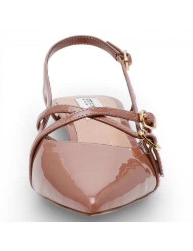 The Lindale Taupe VerniceSTEVE MADDEN Décolleté is an elegant mid-heeled slingback, designed for daily chic use and smart casual occasions. Tapered and feminine design with a spiked tip: core model for those looking for refined style and everyday portability.