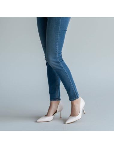 The ivory white upper offers a soft and sophisticated finish. The pointed silhouette slims the figure, while the essential profile guarantees versatility on dresses, suits and event looks. The thin heel balances elegance and portability for extended use.