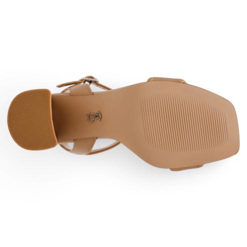 Women's leather sandals nude color, adjustable ankle strap, padded strap for greater comfort, 7 cm wide heel, insole padded interior.