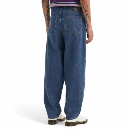 Medium wash men's denim, model 5 super baggy pockets, 1 button and hidden zip, length 30.