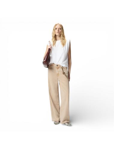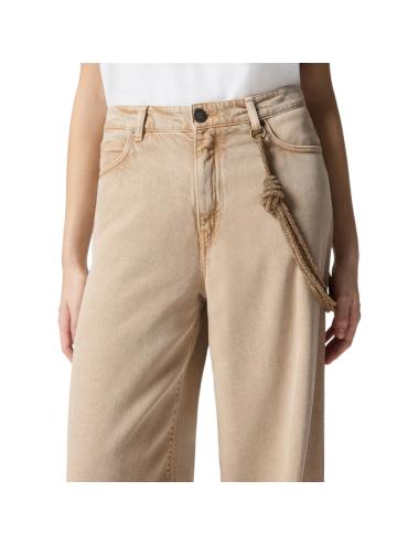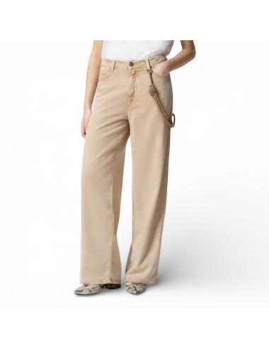 Pinko jeans ampio beige con catena gioiello