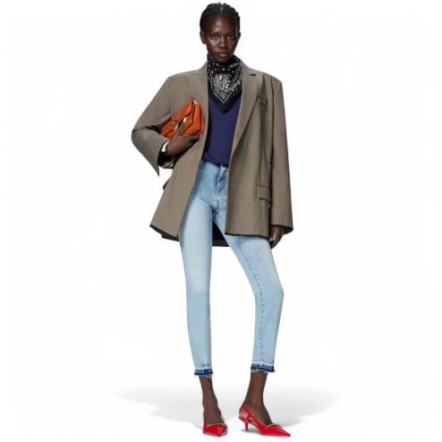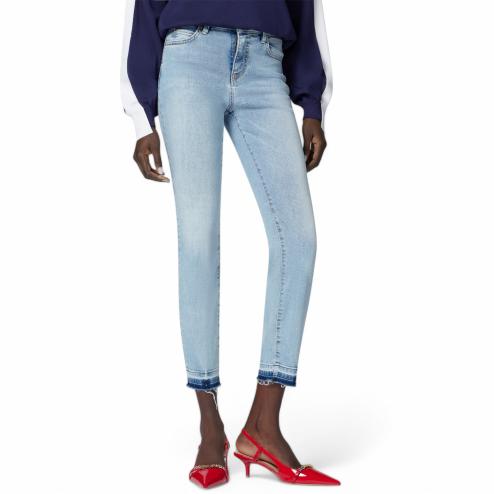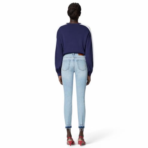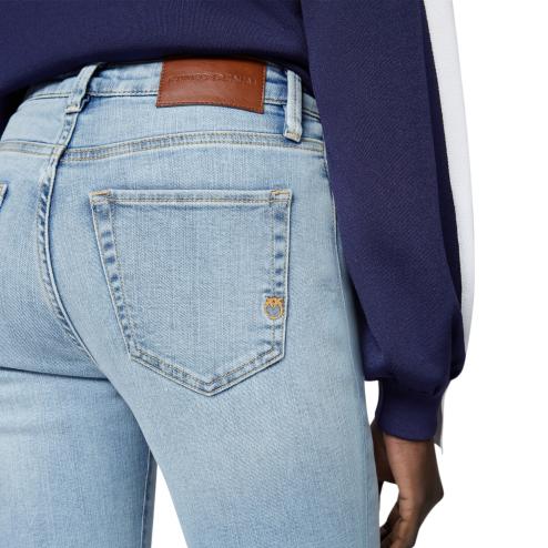Mid-rise waist with belt loops. Zip closure and metal nail button silver color. Jeans skinny-fit in denim blue stretch, with an enveloping design that enhances the silhouette with impeccable comfort. The five-pocket cut and the mid-rise life with belt loops give a versatile and contemporary look.