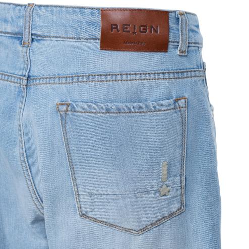 Men's shorts in light-washed denim with 5 pockets. They feature a soft crotch and a perfect fit, offering a comfortable and stylish look for the warmer months. This short jeans Reign combine functionality with a modern aesthetic, ideal for casual wear or laid-back outings.
