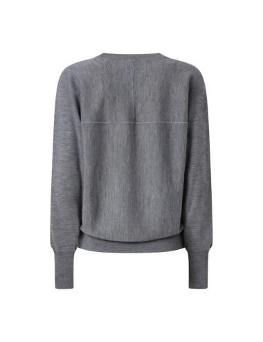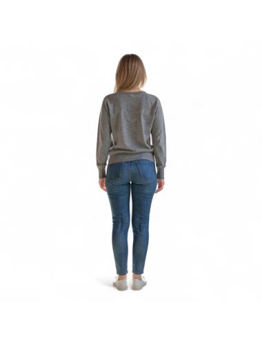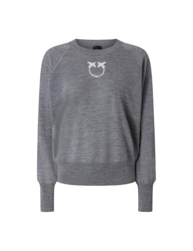 The model features a regular fit with a ribbed hem, cuffs, and neckline, while the back is finished with an exposed seam that recalls the shape of a yoke, typical of Pinko style. Thanks to the anti-pilling treatment, the fabric maintains its softness and durability over time.