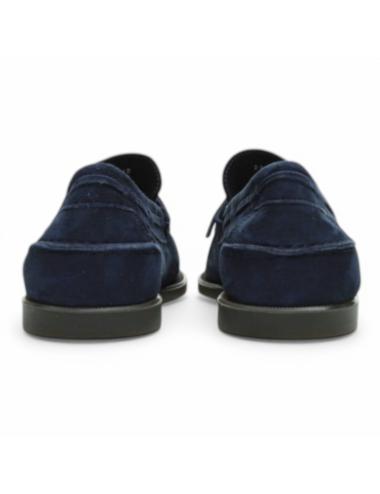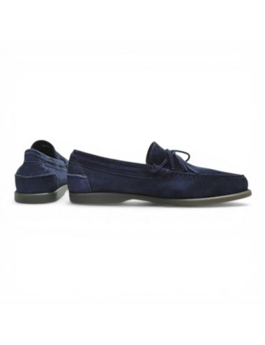 The navy blue suede upper gives depth and elegance to the shoe, while the decorative front drawstring recalls the classic driver style. The handcrafted seams enhance the design while maintaining a clean and contemporary line.
