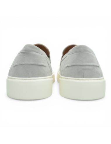 The gray suede upper gives the shoe a sophisticated look and soft to the touch, while the minimal design with front vamp recalls the tradition of classic moccasins reinterpreted in a modern way.