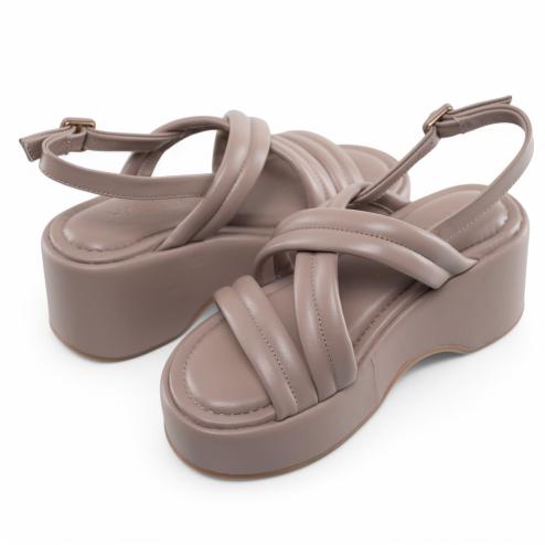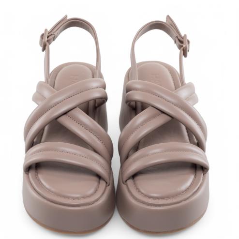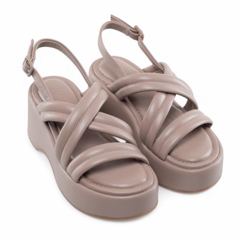 Upper with intersection bands in soft taupe padded tassel, high platformer front 4 cm and back 8 cm, insole in soft latex covered in leather, non-slip natural rubber sole.