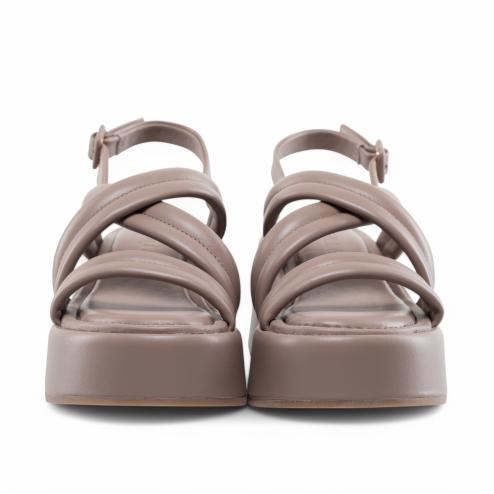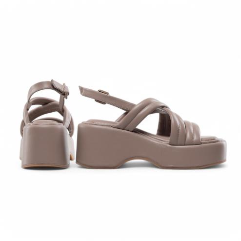Habillé taupe sandals with Thea plateau: the perfect balance between elegance and comfort. Upper with crossed bands in soft padded tassel wraps the foot with a refined touch, while the 8 cm platformer unleashes the silhouette without sacrificing stability. The insole in soft latex covered in leather ensures comfortable support throughout the day, while the non-slip natural rubber sole guarantees safety at every step. Ideal to complete sophisticated and modern look with a touch of character.