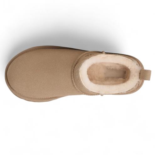 Classic Micro in Sand features a minimal, low-profile design that makes it versatile and easy to pair. The treated suede upper is water and stain resistant, while the interior is lined with soft sheepskin that naturally regulates temperature.