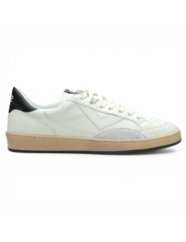 Men's low-top sneakers in white leather, tone-on-tone leather side detail, logo detail printed on the black heel, ivory stitched rubber para with "used" effect, logo fabric label on the tongue, removable 2.5 cm raised latex insole covered in leather, cotton terry lining, white cotton laces.