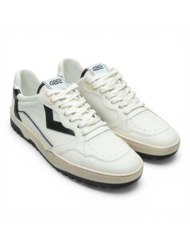 The 4B12 Play Olimpia D201 is a sneaker with a modern and sporty character, ideal for completing casual and urban outfits. Made of white leather with taupe suede inserts and black leather spoiler, they stand out for their elegant and versatile color contrast.