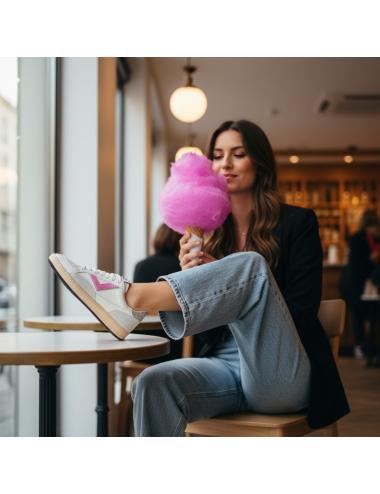 4B12 Playnew women's sneaker leather and suede white fuchsia glitter