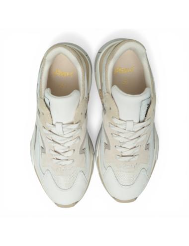 The upper mix of leather, suede and technical fabric in talc vapour beige shades creates a refined balance between neutral materials and colors. The dynamic inserts and the multilayer construction enhance the silhouette, making the shoe modern and versatile.