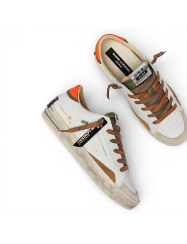 The Crime London SK8 Deluxe Amber Tangerine sneaker is a premium Made in Italy low-top sneaker with street-luxury positioning. High-impact design with vintage effect, solid construction and operating comfort for daily use in an urban context.