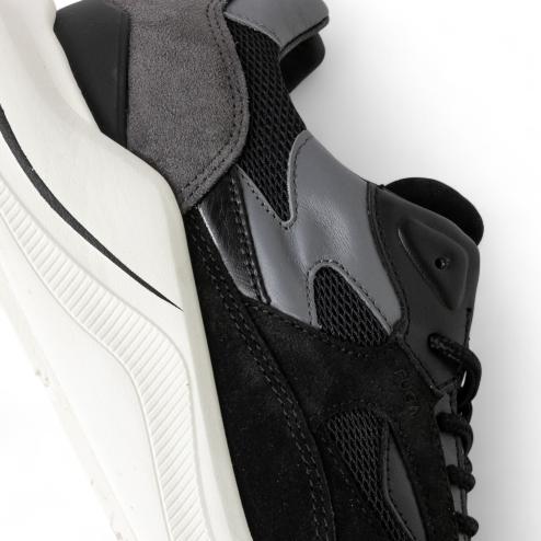 The Date Fuga Mesh Black are running sneakers with a bold, modern design. Crafted from breathable mesh and suede in black and grey, with tone-on-tone leather details and a grey leather heel tab, they combine performance and urban style.