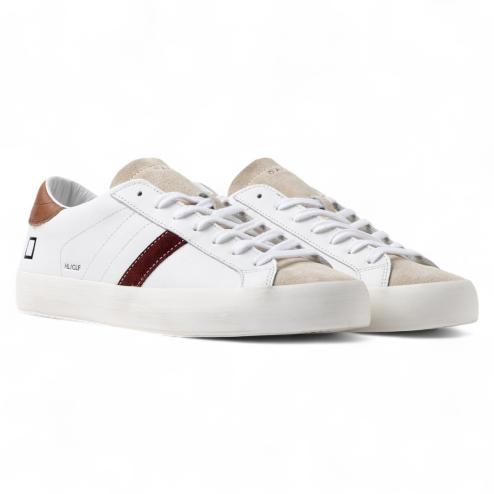 The Hill Low Calf White-Cuoio combines clean lines and refined details in a versatile and casual model. Crafted from white leather with a beige suede tongue and burgundy suede side stripe, they are finished with a tan leather heel tab for an elegant contrast.