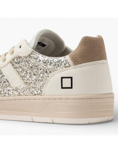 The D.A.T.E. Court 2.0 Glitter Platinum sneaker is a premium Made in Italy low-top designed for daily use with a focus on style and comfort. Clean, feminine silhouette with sparkling accents: statement style to elevate casual and urban chic outfits.