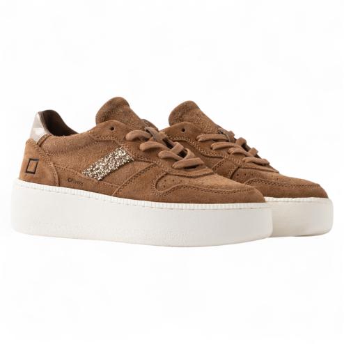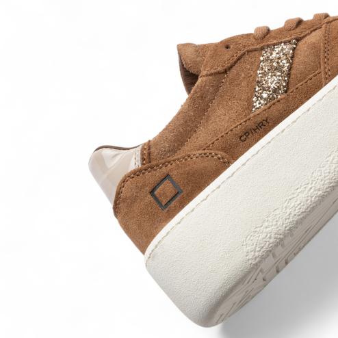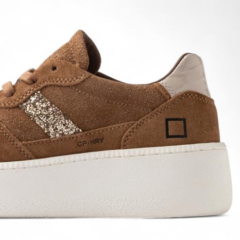 The Court Platform Hairy Cuoio women's sneakers embodies a bold and refined style, perfect for those who love to stand out. Crafted from leather suede with hairy suede details, they are embellished with a bronze glitter side band that adds a touch of brightness and glamour.