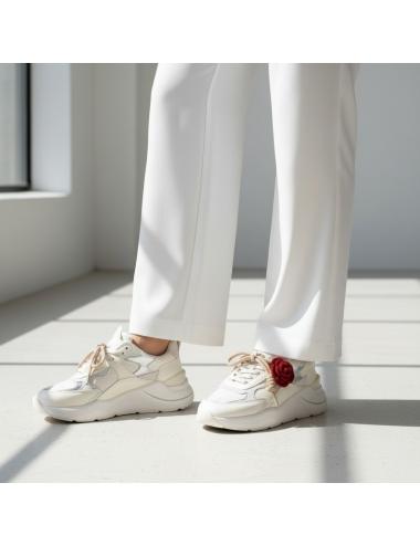 The style is embellished with silver laminated leather details and an iconic ivory spoiler on the back. The attention to detail is visible in the cotton laces and in the leather and cotton terry lining, designed to offer maximum breathability. Comfort is guaranteed by the 2.5 cm raised gel insole, ideal for correct posture throughout the day.