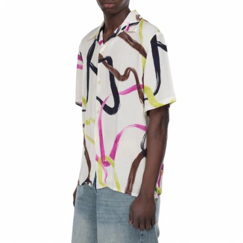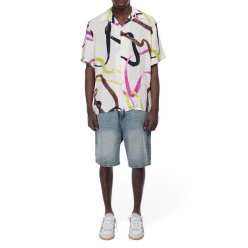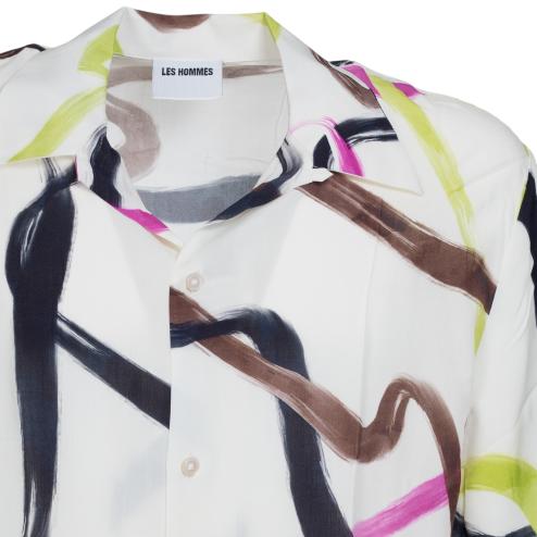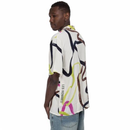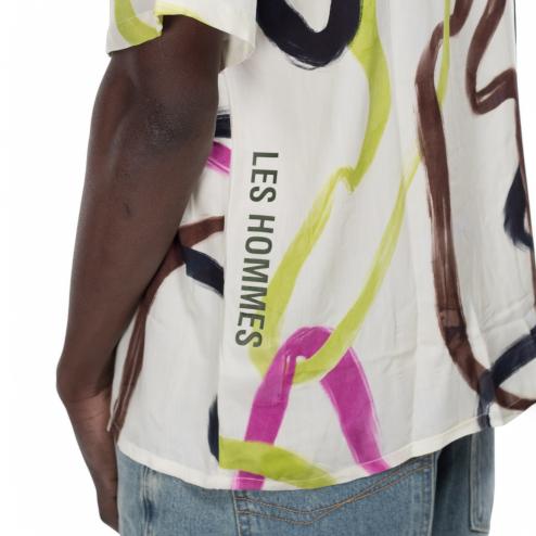 Men's shirt from model bowling, with multicolor printing that adds a touch of vivacity to the design. The short sleeves and fabric in pure viscose ensure a feeling of freshness and comfort, making it ideal for warmer days. An elegant but informal garment, perfect for a modern and dynamic look.