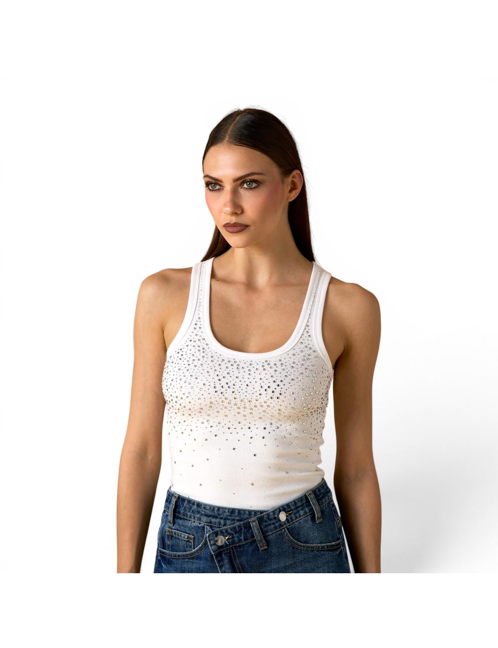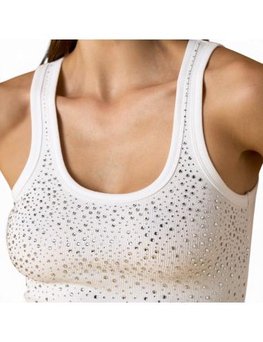 Nosecrets canotta bianca con strass