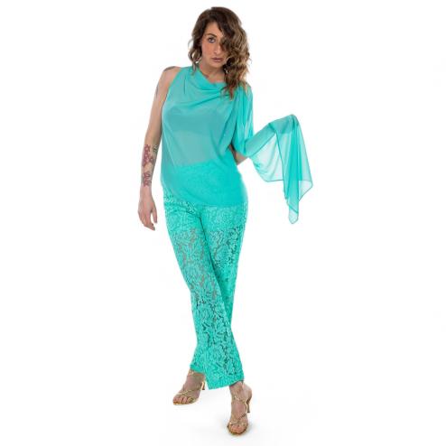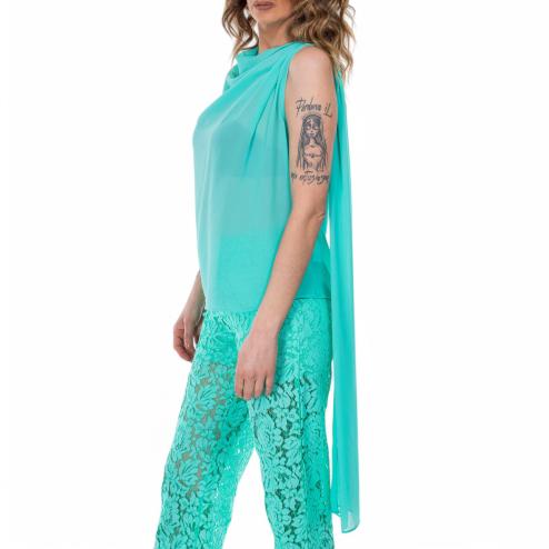 The refined and seductive design makes this green top a perfect option for special evenings or to add a bold touch of elegance to your daily outfit.
