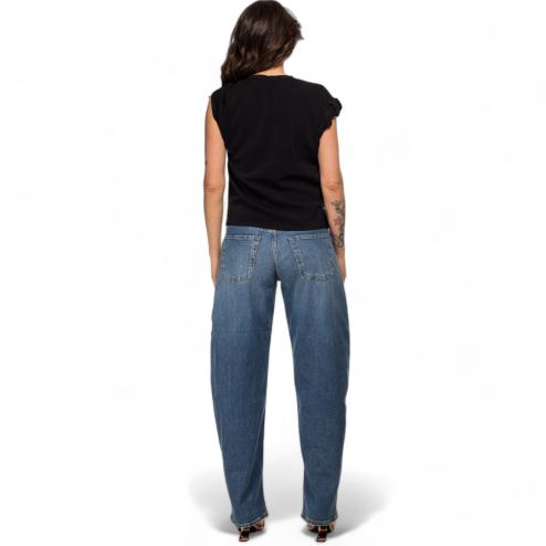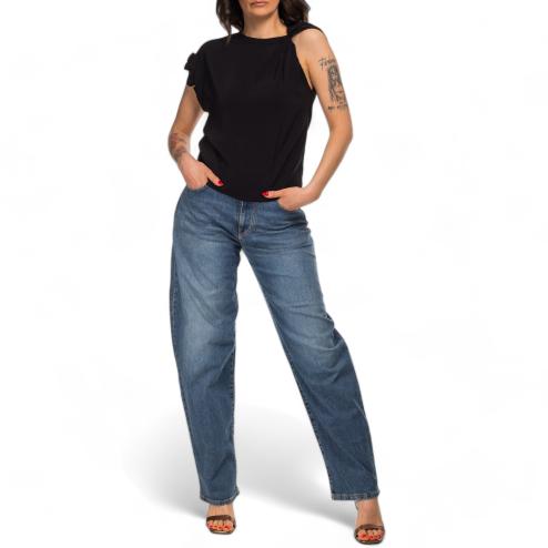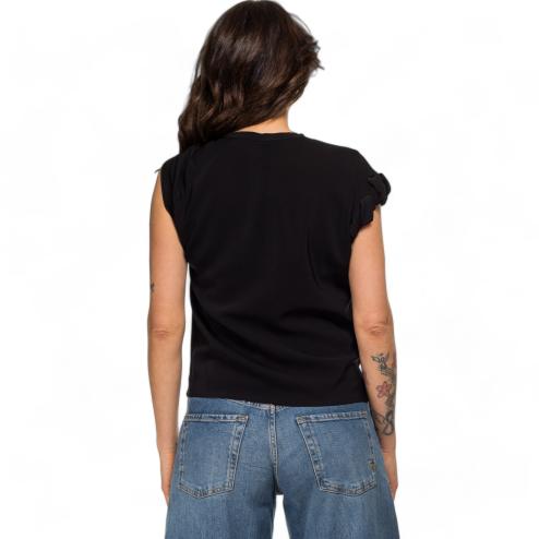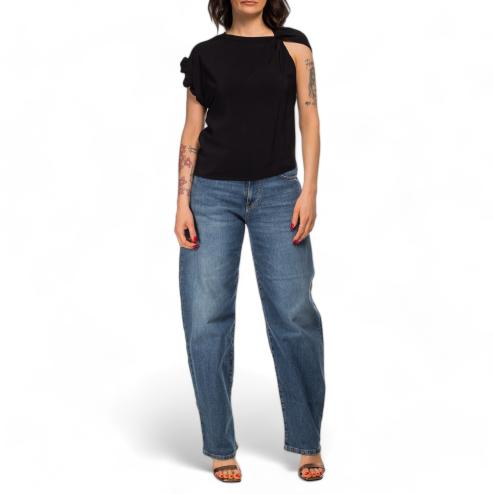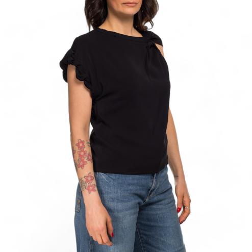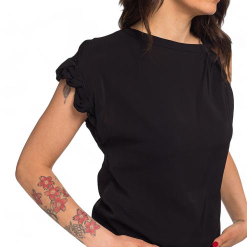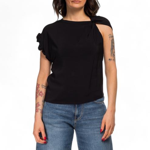 Pinko woman blouse half sleeve in viscose with elegant curling on the right sleeve, fluid fit.