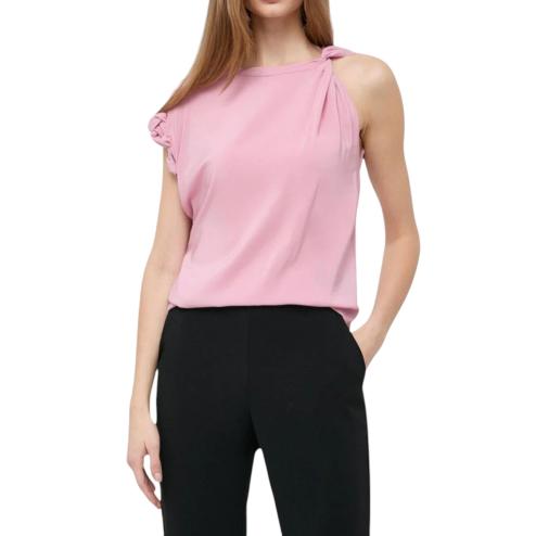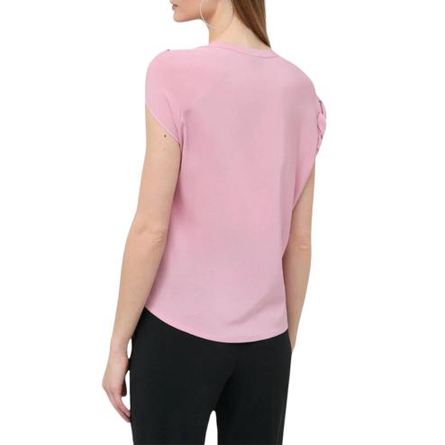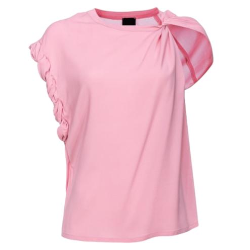 Pinko woman blouse pink half sleeve in viscose with elegant curling on the right sleeve, smooth fit.