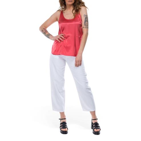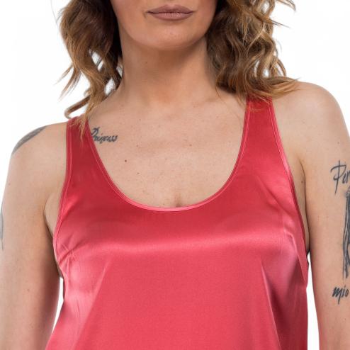 Woman top in stretch silk coral color.