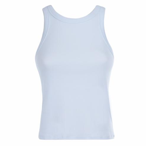 White woman top, basic model, sleeveless model with wide shoulder straps.