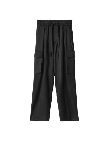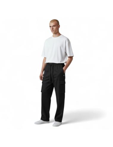 The design stands out for its elastic waistband with adjustable drawstring and side pockets with flaps, giving the garment a modern and practical feel. The straight, clean line is perfect for casual or trendy streetwear looks, maintaining the brand's signature minimalist elegance.