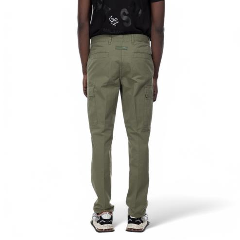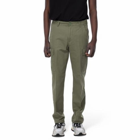 Men's trousers in cotton fabric color military green, design cargo cargo with wide side pockets that give a practical and aesthetically interesting touch. The soft leg ensures a comfortable and modern fit, perfect for those looking for a casual but stylish look. Ideal for a daily outfit that combines functionality and current trends.
